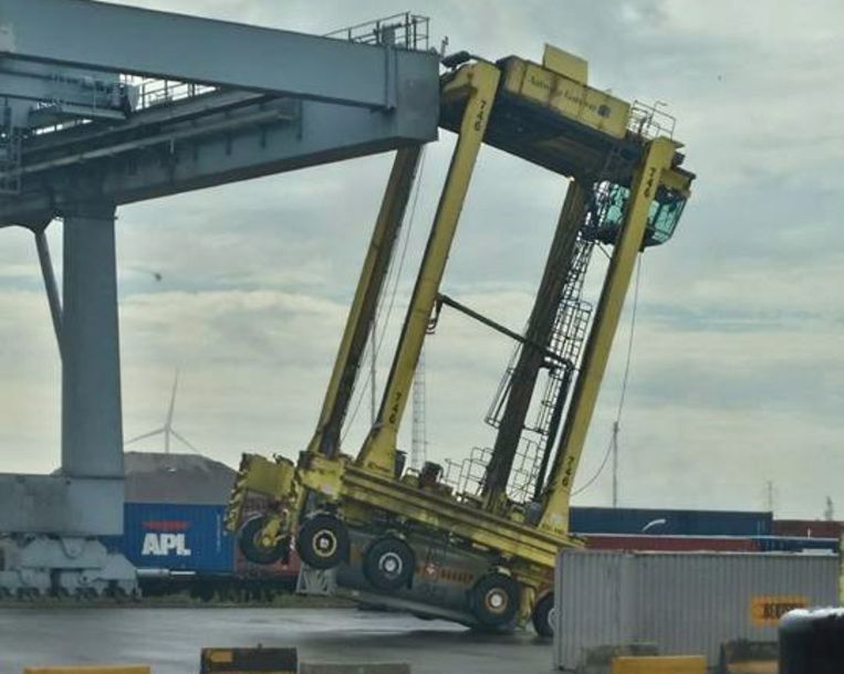 For the third time in a few weeks an accident with a 'straddle carrier' happened in the port of Antwerp. Straddle carriers are used to move containers. This time, a driver chose the wrong way at quay 1700 and found himself on the track of a gantry crane. The straddle carrier, which is up to 13 meters high, hit the bottom of the crane. The driver was not injured.